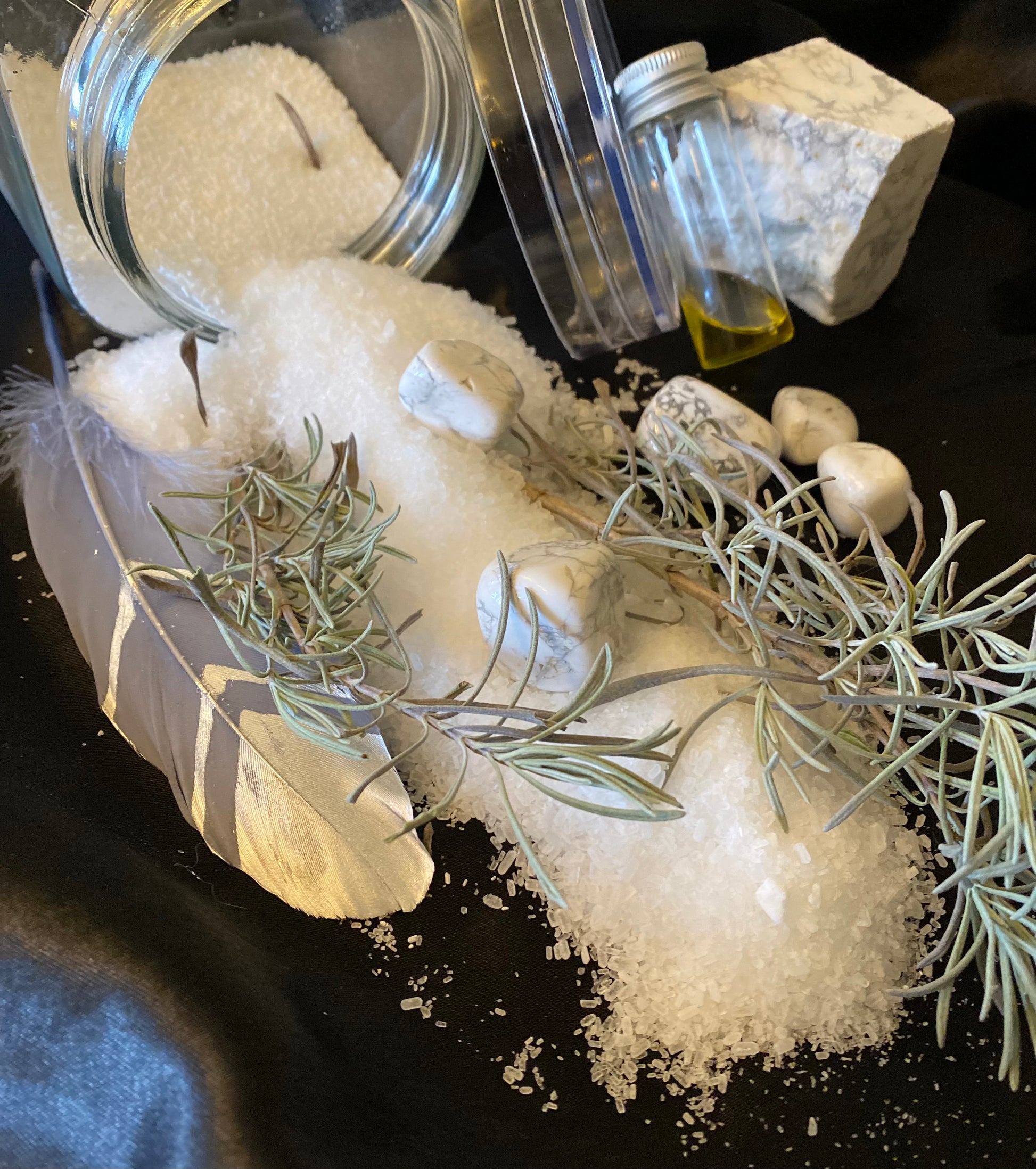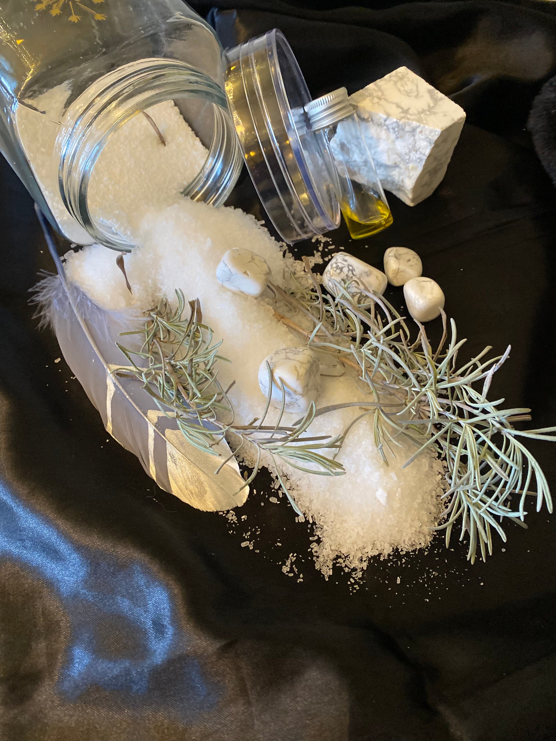 Approximately 2 Cups of Lavender Bath Salts: Lavender, a staple in relaxation rituals for centuries, is known for its soothing and calming properties. Historically, the ancient Romans used lavender in baths for its relaxing effects, and its presence in your soak will help ease tension and prepare your mind and body for restful sleep.